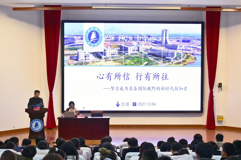 为帮助广大新生同学展望未来发展、规划求学生涯,12月4日上午,深蓝学院邀请江苏科技大学学术委员会委员、环境与化学工程学院沈薇教授在梦溪校区演讲厅以“心有所信 行有所往——努力成为具备国际视野的新时代探知者”为主题开展了本学期第八讲转型教育课。深蓝学院党总支副书记秦向荣、学院部分教师、2021级深蓝学子和新生代表在梦溪校区演讲厅现场聆听了授课,4000余名新生在教室同步收看了视频直播。本次课程由深蓝学院周昱副院长主持。